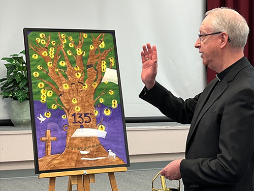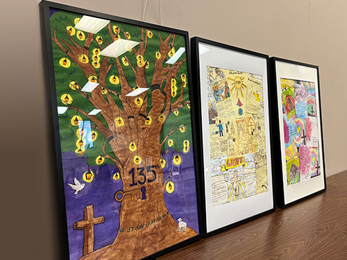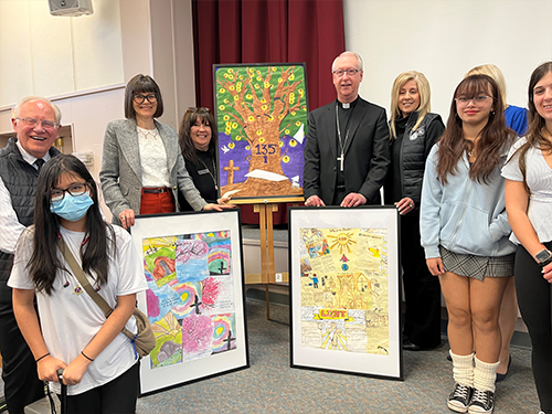 This year, during Catholic Education Week, Trustees were thrilled to join our partners in celebrating the invaluable gift of Catholic education by honouring students' achievements at the Witness Through Art event. Bishop David Motiuk Catholic Elementary/Junior High School represented our Division in an art project organized by the Archdiocese of Edmonton. Inspired by this year’s Catholic Education Week theme "Courage to Lead," students created stunning pieces that also paid homage to the Division's 135th anniversary. These blessed artworks now proudly adorn the Archdiocese's Assembly Hall.