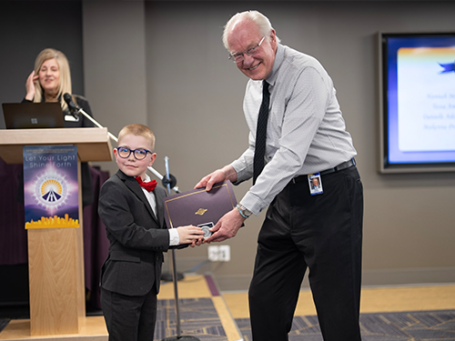 The Edmonton Catholic Schools Board of Trustees held the second annual Lumen Christi Student Faith Leadership Award ceremony on April 10th and 11th, 2024. This event recognizes our students for their leadership in faith, service, and community and honours those who have made significant contributions to the Catholic identity within their schools. As a Catholic institution, we are called to nurture the spiritual growth of our students and foster a community where God's love shines through every action. The recipients of this award embrace this calling wholeheartedly, serving as beacons of light and love within our schools and inspiring others to live according to the principles of our faith, and their exemplary actions serve as a model for others to follow. Each school in our Division nominated one student who exemplified values of service and faith-driven leadership. In total, 92 students were honoured over the course of the two days.
