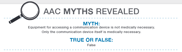 This myth is based on the belief that equipment for accessing an AAC device is not medically necessary. The truth is that technology is improving all the time and people who need AAC and have difficulty using their hands have many solutions available to them, so there’s no reason to deny them access.