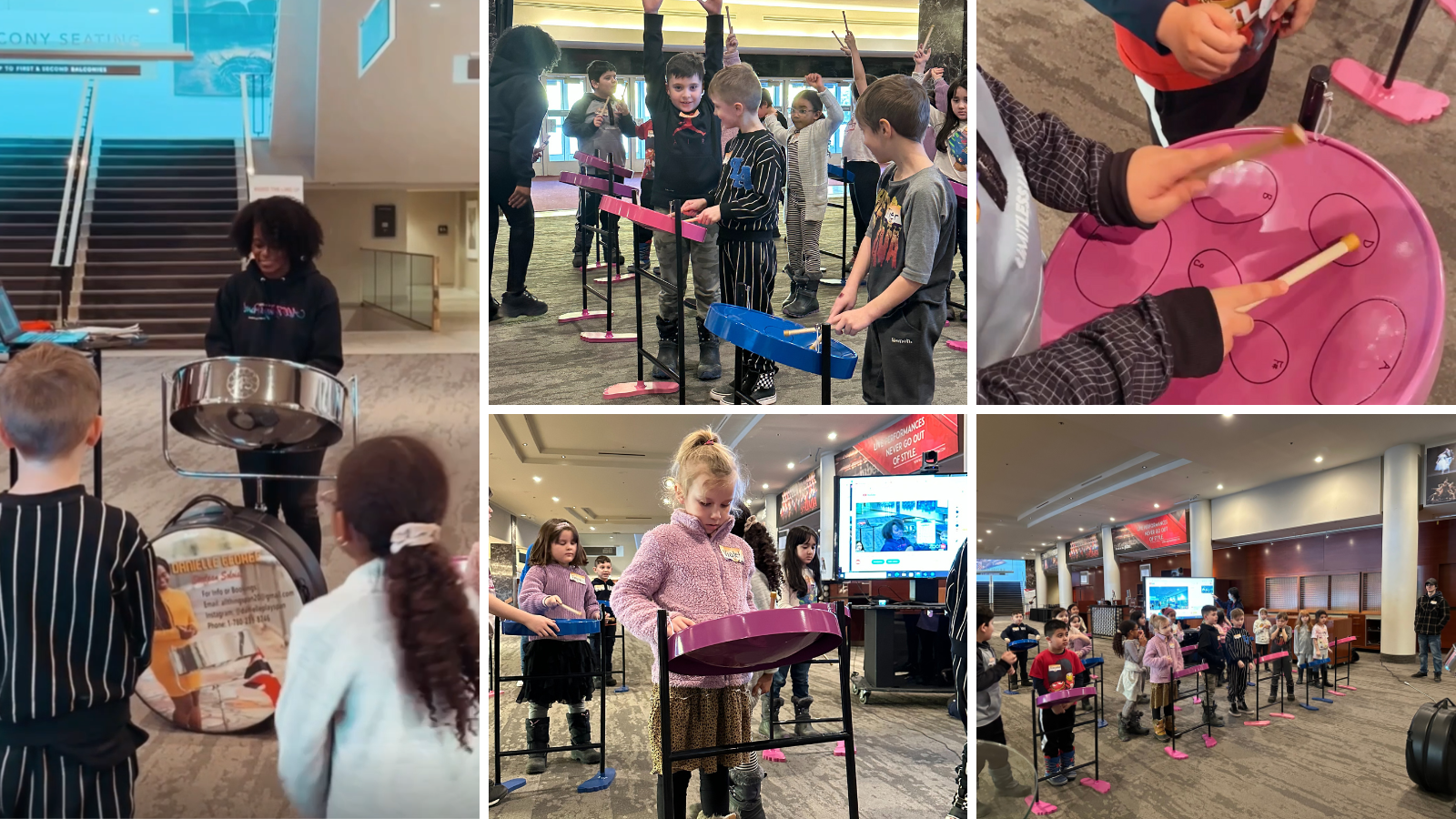 Students at Blessed John Paul I spent the day atJube School at the Northern Alberta Jubilee Auditorium playing the steelpan alongside pannist Danielle George. They learned about the history of the percussion instrument and some techniques.