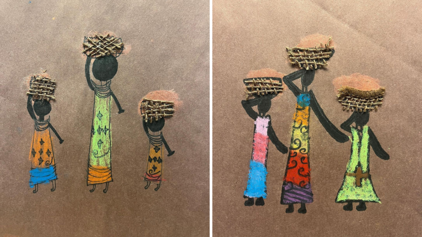 Grade 3 students at St. Catherine Catholic Elementary/Junior High School first explored and then created their own African Line Art.