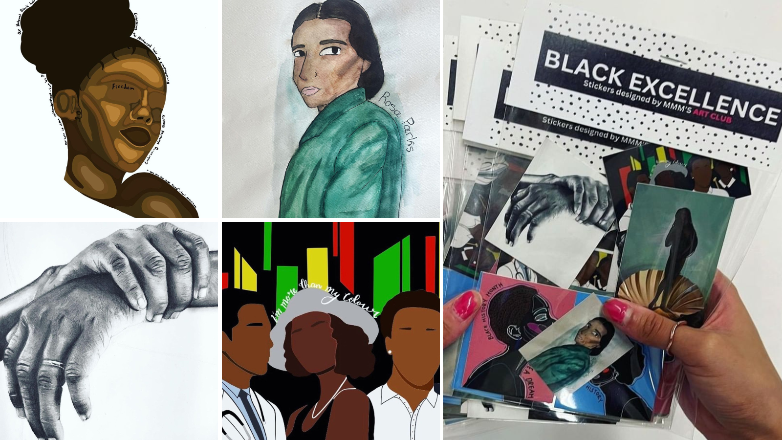 The Art Club at Mother Margaret Mary Catholic High School is selling original artwork stickers and prints. Proceeds from the sale are supporting the MMM Black Student Association’s social justice initiative creating hair education and care packages for young Black people.