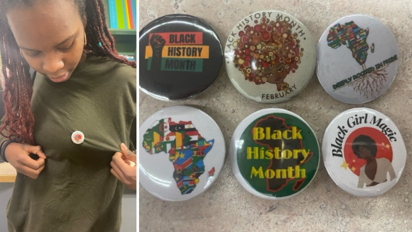 The AOB Black History Month Committee has also printed, cut, and pressed hundreds of BHM buttons to distribute to students.