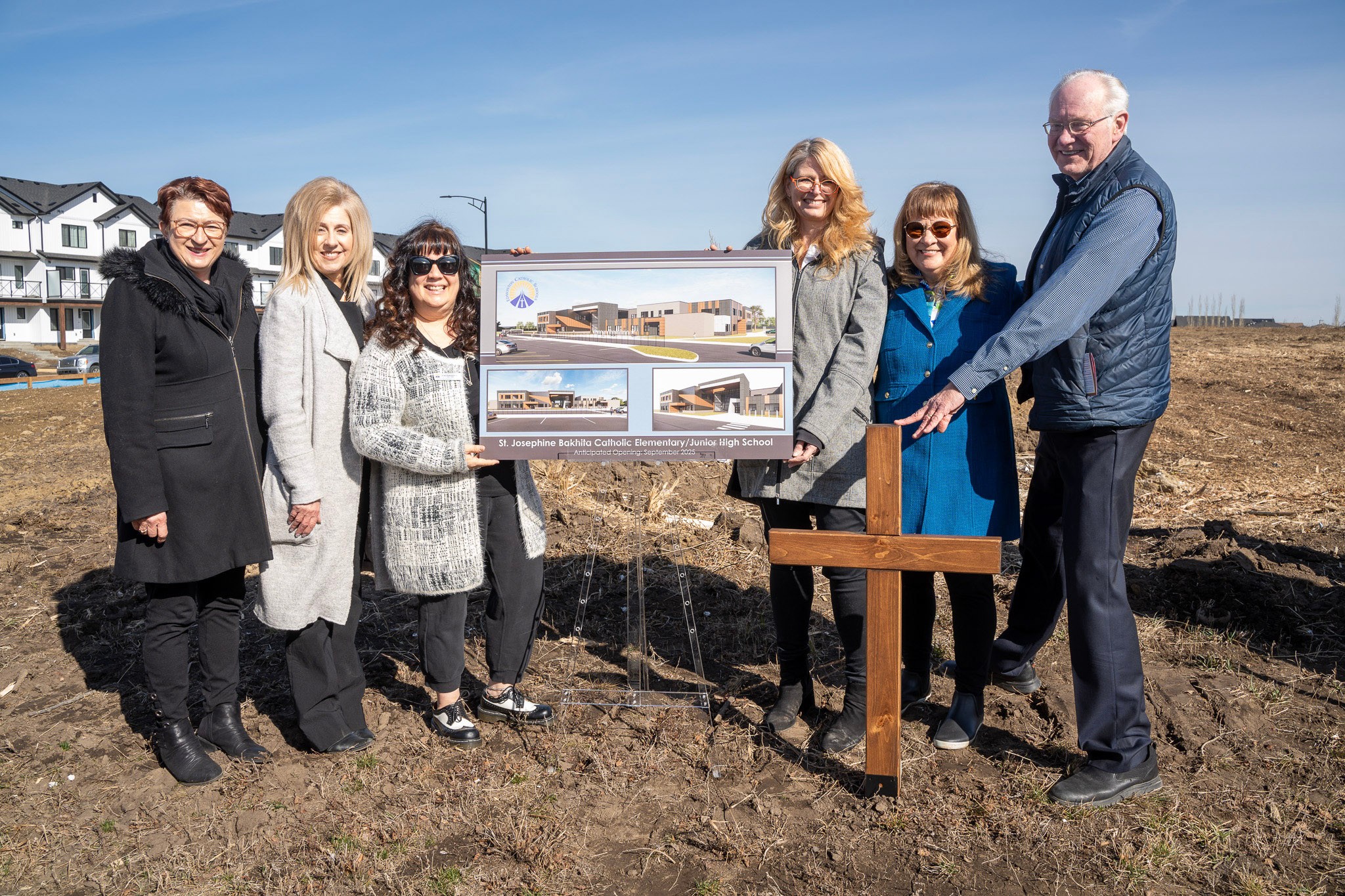Edmonton Catholic Schools held a site blessing for St. Josephine Bakhita Catholic Elementary/Junior High School in the Lewis Farms/Secord neighbourhood. His Grace, Archbishop Richard Smith, blessed the site, which was followed by an official groundbreaking by the Edmonton Catholic Schools' Board of Trustees.
