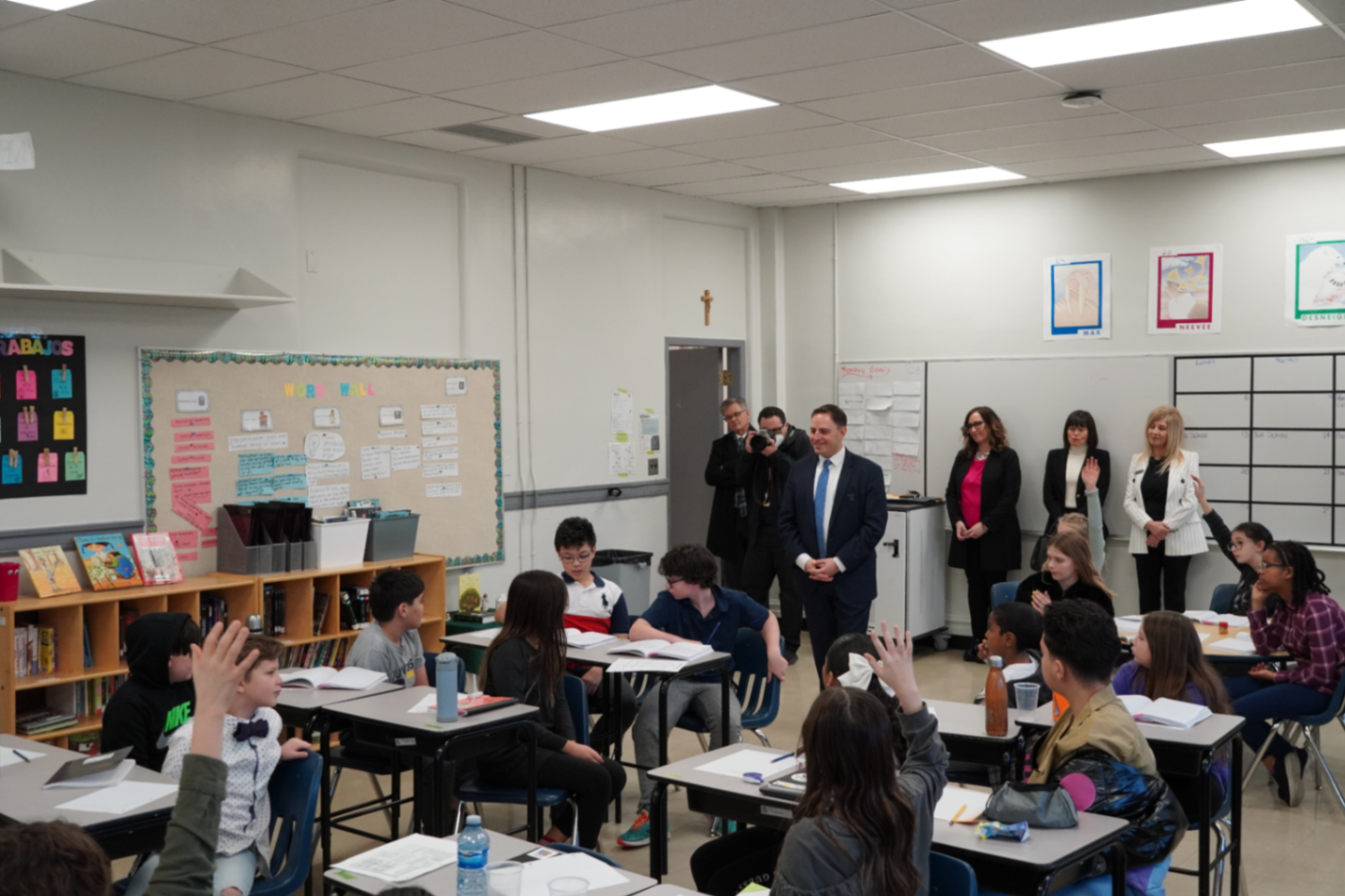 The Board of Trustees actively carries out focused advocacy work throughout the year on behalf of Edmonton Catholic Schools to raise awareness of the needs of our students, staff, and Division through continued communication with Provincial and Municipal levels of government. On November 28, Education Minister Demetrios Nicolaides joined Board Chair Sandra Palazzo at Holy Child Catholic Elementary School to announce additional funding to deal with rising enrolment in school divisions. The funding may be used to hire additional teachers, and classroom support staff to manage class sizes.