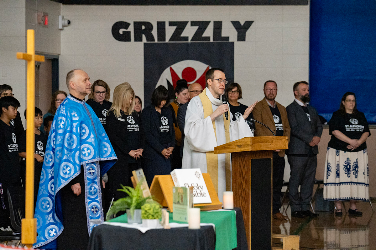 The joyous event began with a Liturgy of the Word led by Bishop David Motiuk, followed by inspiring remarks from Minister Dale Nally, Mayor Amarjeet Sohi, Trustee Lisa Turchansky, and Chief Superintendent Lynnette Anderson. Division Chaplain Father Julian blessed the school’s classrooms and learning spaces, adding a spiritual touch to the day’s festivities. The celebration was made even more special as it coincided with what would have been Father McCaffery’s birthday, a fitting tribute to the beloved priest after whom the school is named. The day was a true reflection of the school’s mission to support the growth and development of students in a faith-filled environment, inspired by the legacy of Father McCaffery.