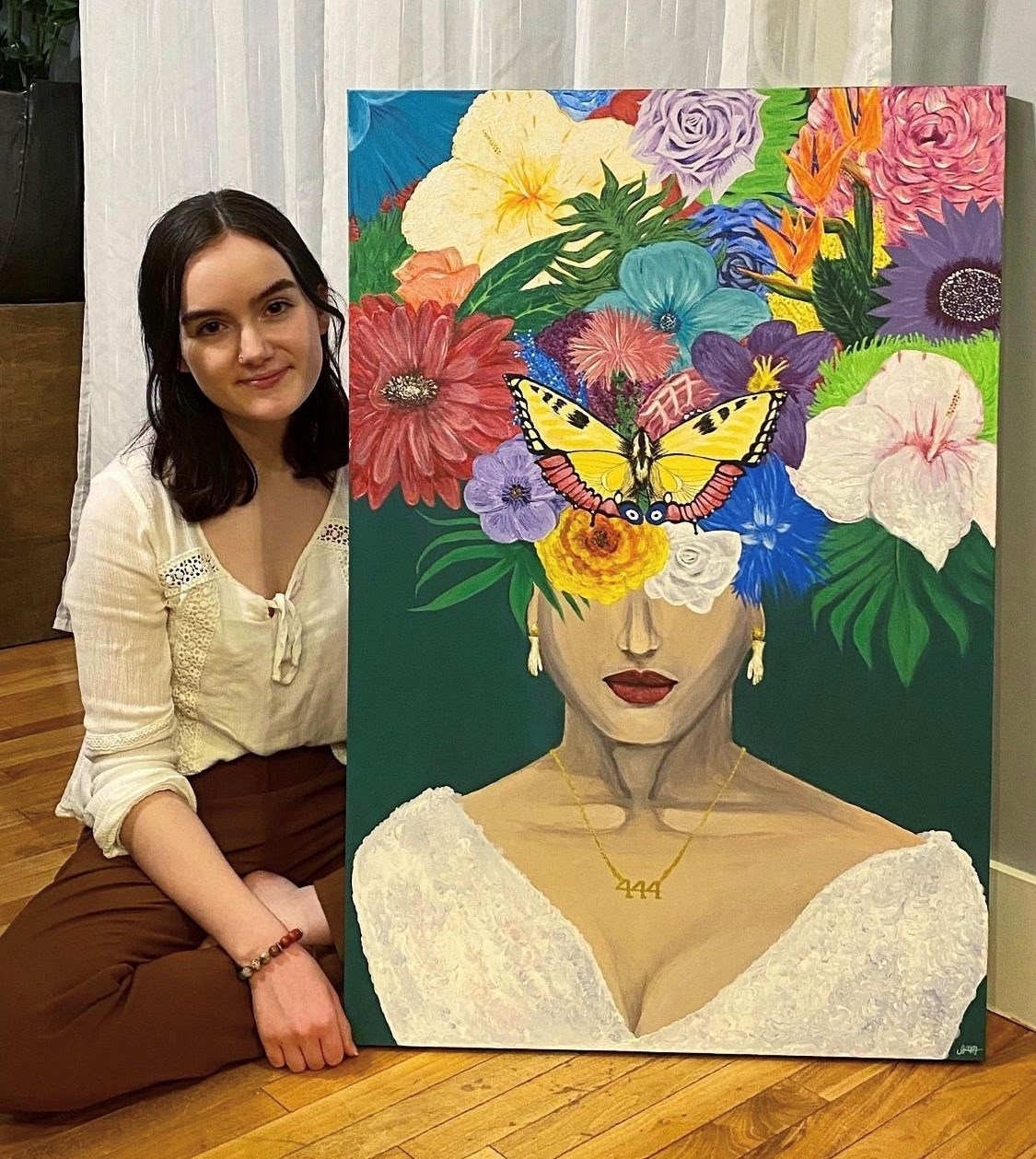 18-year-old Isabella MacLean poses by her painting which is the cover art for the 31st annual Celebration of the Arts